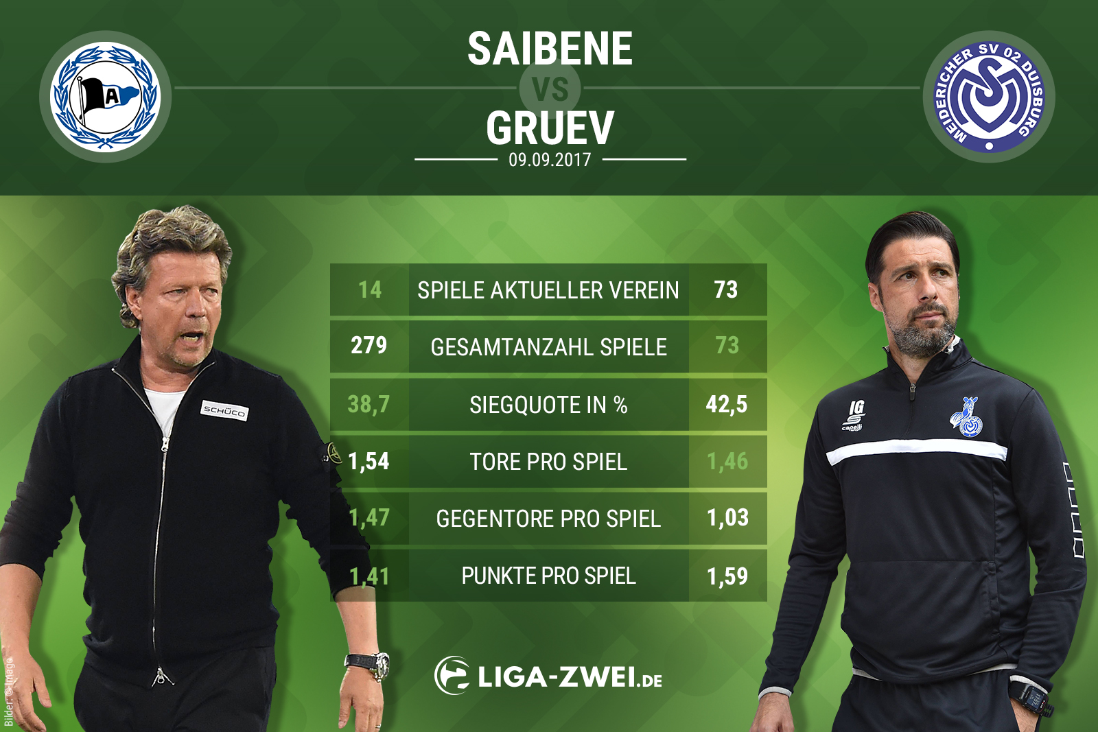 Für Gruev ist es das zweite Duell gegen Bielefeld, im ersten Spiel (Saison 2015/16) hatte er mit 1:2 das Nachsehen. Saibene hingegen hat sich noch nie mit Duisburg gemessen und steht somit vor einer Premiere.