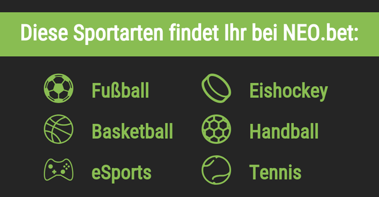 Das Wettangebot von NEO.bet ist auf die Sportarten bezogen übersichtlich, die beliebtesten Sportwetten aus den Bereichen Fußball, Tennis, Basketball, Tischtennis Wetten und mehr stehen zur Verfügung. Speziell den Fußball-Bereich haben wir uns in unserem Test genauer angeschaut.